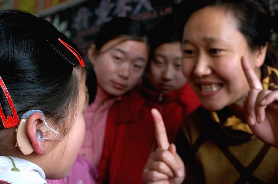 在這二十余年的特殊教育工作中,她始終奮斗在教育教學第一線,以一顆慈母般的胸懷去關心、呵護著這群有耳不能聽,有口不能言的天使,在特殊教育這塊貧瘠的土地上辛勤耕耘,默默地奉獻著青春和熱血……
