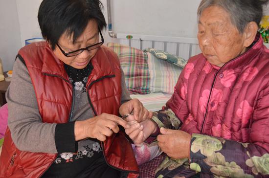 郭玉喜在幫老人剪指甲