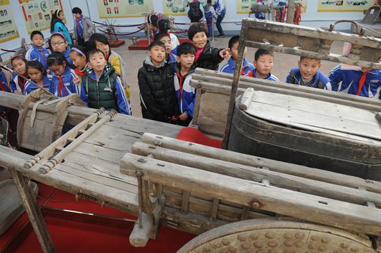 在村民俗館對小學生進行傳統(tǒng)文化教育