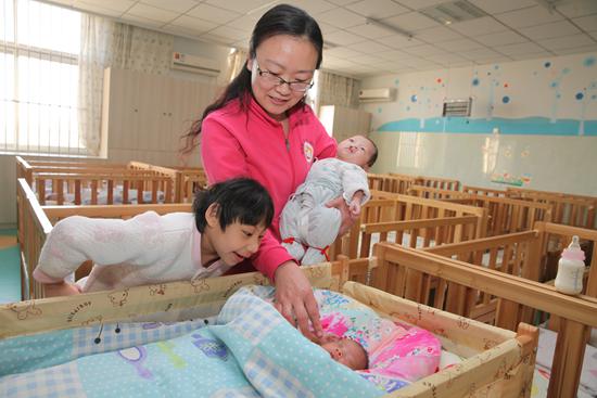 有人覺得,整天給孩子擦屎擦尿,肯定是又臟又累,但位霞卻一直每天重復(fù)著這樣的工作。十多年里,她已經(jīng)習(xí)慣了這樣的照顧。2013年,福利院接收了一名患有先天性梅毒的女嬰,因?yàn)樗难杭叭魏畏置谖锒季哂袀魅拘裕愿@簩λM(jìn)行了隔離養(yǎng)育。第一次接觸這種傳染性的孩子,位霞心里難免有些緊張,也有些抵觸。“但是看著眼前這個(gè)只有幾個(gè)月大的孩子,兩只眼睛向你望過來、對你笑的時(shí)候,還是忍不住伸手去摸摸她。”位霞說,在她心里,孩子是無辜的,總不能看著她挨餓,拉了尿了總不能放著不管,如果自己都不能以身作則,那又怎么能去說服別人?最終,孩子經(jīng)過積極地治療,在福利院的精心照顧下,已經(jīng)會(huì)跑會(huì)叫媽媽了。看著孩子臉上的笑容,位霞也感到由衷的欣慰。
