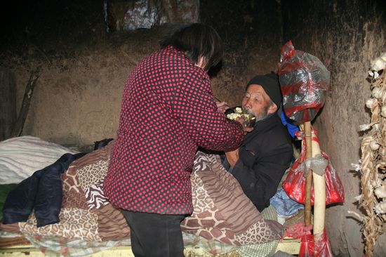 日子雖然窮點(diǎn),但只要家人都健健康康的,李安玲就很知足,送走了婆婆,李安玲肩上的擔(dān)子本來可以暫時(shí)輕一點(diǎn),但是上天好像偏偏要故意考驗(yàn)李安玲的孝心。2004年8月初,公公吳之田去艾曲趕集的路上發(fā)生了車禍,住進(jìn)了縣人民醫(yī)院。對于大字不識幾個(gè)的農(nóng)家婦女來說,單只是上樓下樓、叫醫(yī)生打針換藥、取單拿藥就夠讓人崩潰了,何況她自己的眼睛還看不太清楚。但是這一切李安玲沒有絲毫的抱怨,堅(jiān)強(qiáng)地獨(dú)自承擔(dān)下來。2004年12月公公出院回到家后就臥床不起。上要照顧生活不能自理的公公,下要照顧年幼的孩子,還得照顧有精神病的丈夫,李安玲白天下地干農(nóng)活、黑天洗衣做飯,生活的重?fù)?dān)絲毫沒有壓垮李安玲,面對困難她變得更加堅(jiān)強(qiáng)勇敢。