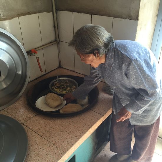 林鳳英老人給癱瘓的小兒媳婦做午飯