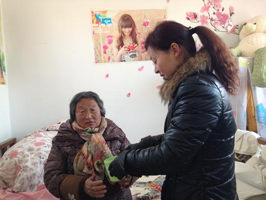 隨著婆婆年齡漸大,頸椎不好,血壓不穩,有時都需要人照顧。鮑愛群始終無微不至的照顧著婆婆,2013年,婆婆因摔傷腿住進了醫院,她天天陪護在身邊,為老人端屎端尿,擦洗身體,喂飯吃藥。出院后她為婆婆洗澡、梳頭、理發、捶背,剪指甲,無微不至,精心侍侯,從不厭煩。在她的精心照護下,婆婆病情大有好轉,回到家中為了不讓臥床的婆婆寂寞,她更換了彩電,戲曲播放機,時常讓婆婆看看電視,聽聽戲曲。鮑愛群既要服侍婆婆,又要干干洗店里的活,多年來任勞任怨,毫無怨言。