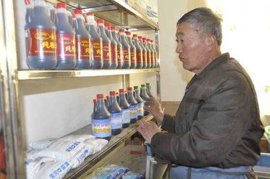 老侯介紹,他的釀造廠從制作到銷售,依然維持著最原始的傳統(tǒng)模式,手工傳統(tǒng)釀造、腌制,廠里也沒有配送車。有人來打醬油、醋,只見老兩口翻開門庭中的大缸,拿著傳統(tǒng)打醬油用的吊子、漏斗,邊和客戶聊天邊靈活地為顧客打著調(diào)味品。老侯把漏斗插在顧客提來的塑料桶上,吊子伸進(jìn)醋缸,舀一勺就是一斤,穩(wěn)穩(wěn)當(dāng)當(dāng)灌進(jìn)桶里,最后不忘再多舀一部分進(jìn)去。顧客拿了貨架上陳列的味極鮮醬油,老侯不忘推薦一句“咱家里有散裝的,價(jià)格比那個(gè)便宜一半,下回可以嘗嘗咱自己做的”。這場景,仿佛回到了上世紀(jì)九十年代。
