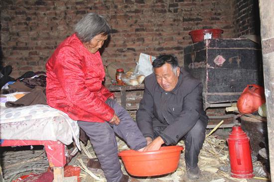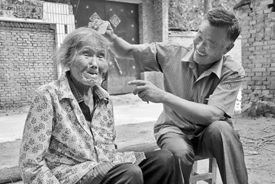 過年時,劉乃現會把雞、魚和肉燉爛燉軟,送到老人灶臺上,初一一大早再送上一大碗餃子,放上一掛鞭炮,讓老人過一個快樂的新春佳節;老人生病時,劉乃現和妻子就會輪流守護在床前,端水喂藥,擦屎倒尿,直到老人轉危為安。有一次,老人痢疾,拉了一褲子污物,劉乃現立馬到就近的集市,買了新衣服。在劉乃現夫婦無微不至的照顧下,百歲壽齡的孫閆氏除了聽力有所減弱,口齒還算清晰,依靠拐杖遛彎串門沒什么問題。
