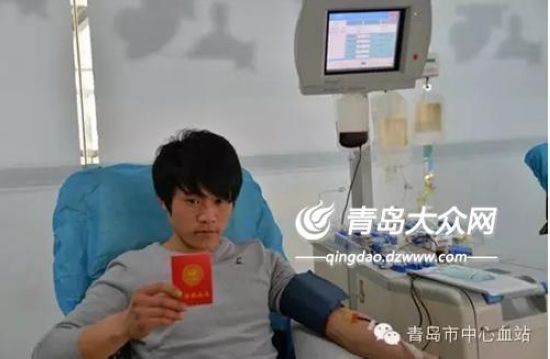 從臨沂趕到青島的孫善銀正在獻血(青島市中心血站供圖)