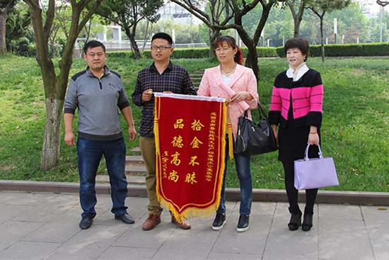 5月10日上午,市民葛秀霞女士來到縣住建局文化廣場管理辦公室專程向好心人張宗華同志鄭重道謝。葛女士還送來一封熱情洋溢的感謝信和一面寫有“拾金不昧品德高尚”的錦旗,以表達自己的感激之情。