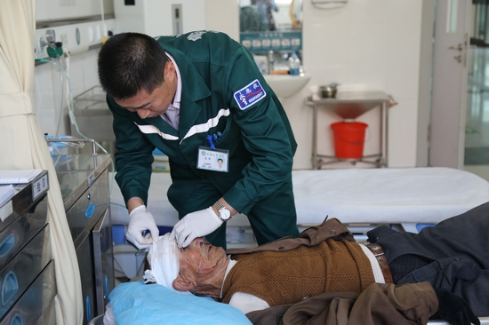 幾年前,一輛拉水的大車車禍導致駕駛室嚴重變形,駕駛員被擠,那天正是大雨、天黑,由于報警人沒有描述病人被卡,救護車到達現場后才發現自己沒有帶雨具。那是一個胸部閉合損傷液氣胸的病人,到達時病人已經嚴重憋氣意識恍惚,反復復述自己不行了不行了。高偉一邊不斷地鼓勵患者一邊和護士進行基本的搶救,吸氧、輸液、為患者進行胸部支撐,就這樣他們一手舉著吊瓶一手扶著患者在雨里站了40分鐘,直到消防車到來把患者解救出來護送到醫院,這時高偉二人早已渾身濕透,寒戰不止,而且回來才發現高偉自己胳膊在救助時不知怎么劃破了,需縫合兩針!可是這時還不能處理自己的傷情,這個病人到達醫院已經快要呼吸循環衰竭,高偉需要迅速和專科對病人進行進一步處理,好消息是這個病人在進行胸腔穿刺排氣引流等一系列處理后病情逐步穩定,他們硬生生把他從鬼門關拉了回來,并在接近一個月后順利出院。