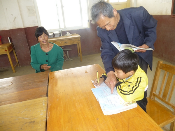 丁德強(qiáng)老師在輔導(dǎo)學(xué)困生岳彩洋