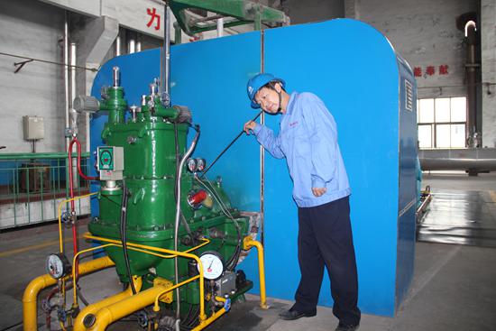 2012年,隨著用暖和用汽量逐漸增大,公司決定將一臺抽凝機(jī)組改為背壓機(jī)。由于購買新汽輪機(jī)價格高昂且供貨周期過長,難以實現(xiàn)當(dāng)年投運(yùn),勢必影響當(dāng)年的正常供熱。為節(jié)約資金和爭取時間,胡克濤開始去網(wǎng)上查詢二手汽輪機(jī),終于查到河南許昌一家企業(yè)自備電廠由于廠房搬遷有閑置汽輪機(jī)。他難抑興奮,50萬就談妥,購買回來后,胡克濤向公司領(lǐng)導(dǎo)立下“軍令狀”:自主設(shè)計、自主施工、自主安裝,四個月內(nèi)完成任務(wù)。時間緊、任務(wù)重。為了啃下這塊硬骨頭,晚上,他挑燈夜戰(zhàn)畫圖紙、做方案,白天,帶領(lǐng)班組爭分奪秒進(jìn)行基礎(chǔ)施工、改造部件。當(dāng)時,正值酷暑,厚厚的工作服穿在身上不久就像放在水里泡過一樣,全都濕透了。每天飯吃不好,覺睡不香,本來160多斤的胡克濤愣是瘦到了一百零幾斤。妻子看在眼里,疼在心上,勸他說:“老胡,算了吧,又不是你一個人的事,你累成這樣值不值啊。再說咱們家上有老下有小的,你累垮了俺們怎么辦啊!比欢,他卻笑笑說:“不要緊,權(quán)當(dāng)減肥了!本瓦@樣,憑著樂觀豁達(dá)的胸懷和舍我其誰的擔(dān)當(dāng),胡克濤帶領(lǐng)團(tuán)隊僅用了3個月時間就圓滿完成任務(wù),實現(xiàn)了一次性啟運(yùn)投產(chǎn)成功,為公司節(jié)約資金260多萬元,也為高質(zhì)量完成冬季供暖奠定了堅實基礎(chǔ)。
