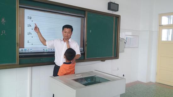 照顧聾啞孩子難,教聾啞孩子學說話更難,對聾啞孩子來說,教說話比教知識更重要。為了教孩子發音,他都是把孩子的手放在自己的脖子上,放在自己的嘴唇邊,讓孩子感受聲帶的顫動和送氣。在學習舌根音時,他甚至把孩子臟兮兮的小手伸進自己嘴里,觸摸發音時舌頭的位置,不停地帶讀,演示口型,展示發音部位,糾正學生發音。口干了,喝口水繼續教,喉嚨腫了,就吃片消炎藥,直到孩子們學會了,發音基本準確了,才肯停下來。雙休日家長來學校接孩子,孩子比較清晰的喊著“媽媽”撲到家長懷里,相擁而泣的場景他永遠不會忘記,這是他感到最幸福的時刻,這也是激勵他不知疲倦的工作、無怨無悔付出的最大動力。