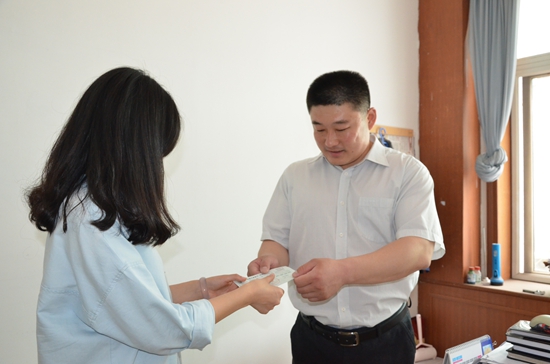 2016年6月6日上午8時,趙軍和往常一樣,到轄區的胡家莊、北嶺社區檢查衛生,在返回單位的路上他無意中發現地上有一張蓋了章的票據,他撿起來一看,原來是一張4萬元的現金支票,密碼清清楚楚的寫在支票的左上方。趙軍的第一反映就是,失主肯定是到銀行辦理業務時不小心丟的,于是他就在此等了20多分鐘,不見有人來尋找。于是他回到單位后他第一時間告知了黨政辦,通過114電話查詢,找到了失主的工作單位。一個多小時候后,失主劉女士來到趙軍辦公室,趙軍仔細與劉女士核對支票信息,確認無疑后,趙軍把支票完整的交給了失主劉女士。