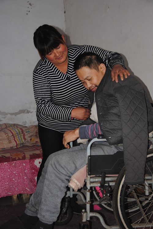 在鄭作霞心里,覺得虧欠最多的就是自己的女兒,由于丈夫生病,從女兒出生到現(xiàn)在,她都沒有很多的精力好好照顧她。女兒從小就特別懂事,知道家里的困難,從來不跟她要吃的穿的,別人給的衣服,她從來都不嫌舊。從懂事開始,女兒每天放學(xué)回來,做完作業(yè)就幫著媽媽做一些力所能及的家務(wù)事,還幫助媽媽照顧爸爸,現(xiàn)在是一名品學(xué)兼優(yōu)的初中一年級學(xué)生。有一次,鄭作霞去地里做農(nóng)活,女兒在家里照顧爸爸。當(dāng)鄭作霞做完農(nóng)活回到家里,看到丈夫倒在一邊,嘴里不停地發(fā)出“嗯、嗯”的聲音,而女兒坐在地上哇哇大哭,當(dāng)時的場景把鄭作霞嚇了一跳,連忙跑過去把丈夫攙起來扶到床邊坐下,又去拉起坐在地上不停哭泣的女兒。