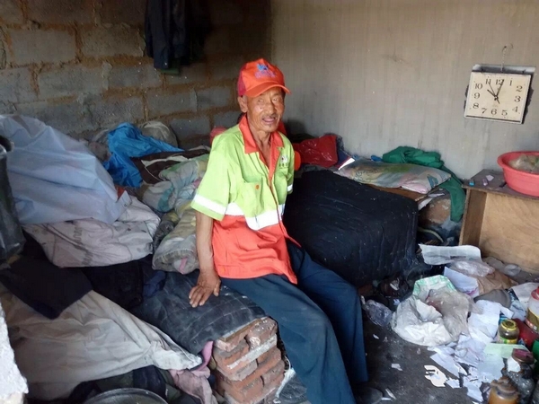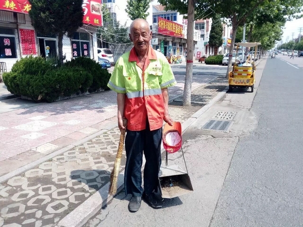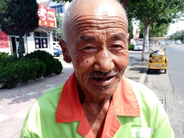 趙紀開兄妹六人,排行老三,多年來為照顧家庭一直未婚。為貼補家用,2014年,57歲的他只身一人離開家鄉,獨自到異地打工,成為了一名即墨的環衛工人,在嵩山二路金盾加油站路口北側路段打掃衛生。他踏實肯干、勤勤懇懇,從早上5點半至晚7點半不曾停歇,工作僅僅3個月,就被環衛公司評為“先進個人”,每個月工資比其他人多100塊,對此他很是自豪。即使工資微薄,他仍然每月固定將工資大部分郵寄回于里家鄉的親人們。雖然只有59歲,可是歲月已在他黝黑的臉上留下了深深的痕跡,并化作那滿頭的白發,他的牙都掉光了,現在咀嚼稍微硬一點的食物牙齒就會痛的不行。他平時省吃儉用,每頓飯就只吃一個饅頭,甚至忙的時候,一整天下來,直到晚上才能稍微歇歇腳。因生活清苦,抽不起香煙,他買來煙絲,用舊書本當煙葉,他只抽手卷的旱煙;他住不起高樓別墅,他就住在100元月租的這個破破爛爛的違章建筑里。