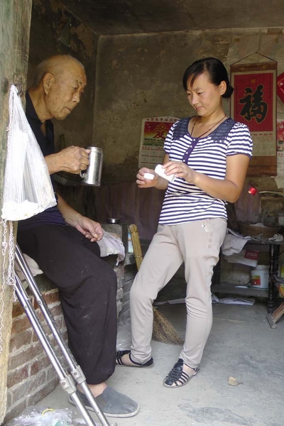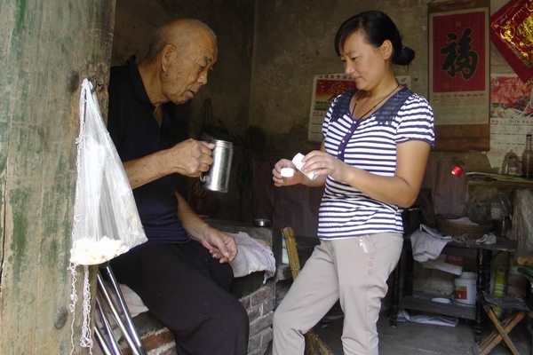 張冬菊幫公公吃藥