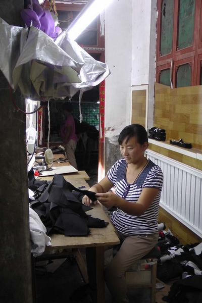 張冬菊在服裝廠做手工