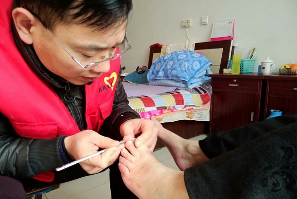 陳紅昌還清楚地記得第一次去給老人免費修腳,是在奎聚街道辛一敬老院。他拿著工具進門后,一聽是免費服務,老人們高興得不得了,個個像小孩子一樣,手舞足蹈,排好隊、脫下鞋、坐端正,安靜地等著。大多數老人的指甲大而厚,腳上的老繭硬又多,有人肯幫他們清理清理,別提多樂意了!岸倚£悘牟幌訔壚先,還跟老人聊家常,幫他們消除寂寞,因此每周,時間未到,老人們就使勁叨念小陳,盼著他來!本蠢显翰块T負責人張大姐說。