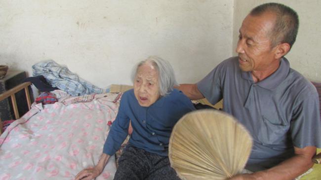 如今70歲的晉學緒已經頭發花白,岳母黃延鳳今年92歲,她有兩個女兒,小女兒外嫁他村,照顧老人的責任就全落在晉學緒和妻子身上。“20年前岳母出了車禍,翻倒的車正好砸在她的腰部,就這樣腰部骨折了。因為年紀太大,醫生不建議進行手術,晉學緒說,從那時候開始,岳母的腰就直不起來了,也干不了農活重活了。他就開始照顧她。