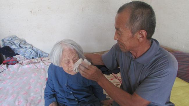 “有天我從地里干活回來,她就開始神志不清,誰也不認識了。”晉學緒說,2010年,岳母開始小腦萎縮,癱瘓在床,完全喪失了自理能力。吃飯、穿衣、上廁所,都要靠我來幫她。”細心的晉學緒邊學邊做,把老人照顧得非常周到。