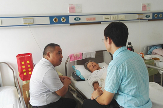 雖不是很富裕,但王允蘭一家勤勞能干,生活普通而幸福。兒子宮洪亮2005年被確診為腎炎后,他便踏上了漫長的治療道路。今年4月,宮洪亮病情加重,在濟南軍分區總醫院確診為雙腎衰竭。唯一的治療方法是腎臟移植,無情的病魔和高昂的醫療費用,無疑給這個家庭了一記晴天霹靂。得知這一消息的宮洪亮,曾一度陷入了絕望,甚至想到過輕生。在宮洪亮陷入絕望的同時,災難卻再次降臨。5月10日,妻子張志香在打工回家的路上出了車禍,頭部受傷昏迷多日,目前還沒有恢復記憶。“感覺自己沒啥希望了,甚至想到過死!笨吹浇K日消沉的兒子和病床上的兒媳,王允蘭明白,在這個時候兒子最需要的是安慰和鼓勵,而作為母親,她要為兒子撐起哪怕是一小片天空。