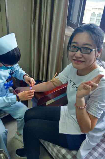 生活中,她是一個(gè)害怕打針的姑娘,但她卻克服害怕打針的恐懼心理,成功完成整個(gè)造血干細(xì)胞的采集過程,為一名白血病患兒創(chuàng)造了重生機(jī)會(huì)。2016年3月17日,正在上班的王軍華接到了來自榮成市紅十字會(huì)的電話,她的造血干細(xì)胞低分辨率檢查結(jié)果顯示跟一名白血病患兒相符合,問她是否同意采集血樣,進(jìn)行高分辨檢查。王軍華毫不猶豫地答應(yīng)了。4月26日,王軍華來到山東省千佛山醫(yī)院并成功實(shí)施了造血干細(xì)胞的采集。王軍華很少打針,每次打針都很怕疼,這次捐獻(xiàn)是她打針最多的一次。就是這樣一個(gè)連打針都怕疼的女孩子,為了救人,卻毫不猶豫地做出了捐獻(xiàn)的選擇。完成捐獻(xiàn)離開病房時(shí),王軍華還委托榮成市紅十字會(huì)相關(guān)負(fù)責(zé)人向她捐獻(xiàn)的對(duì)象,轉(zhuǎn)交她為對(duì)方做的一幅漫畫和一封寫滿關(guān)愛的信件,她說:“我給了孩子一次重生的機(jī)會(huì),更希望她能夠快樂地成長(zhǎng)。”