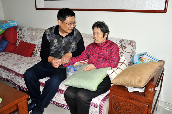每次母親看到王曉建為自己、為工作這么辛苦,會覺得很心疼,盡量能不打擾兒子就不打擾,有時她會用自己的方式表達給兒子,希望能為她請個家政保姆,幫助兒子分擔一下,因為兒子和兒媳工作都很忙。剛開始王曉建對于請保姆這件事是很抗拒,但在母親的一再要求下也同意了,白天由保姆來照顧母親的日常起居,晚上還是自己來照顧。他常說我最大的心愿就是盡我最大的努力讓母親的晚年生活能多一些幸福。
