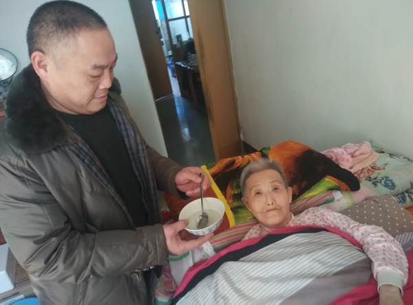 張新軍的愛(ài)人經(jīng)營(yíng)一家小門(mén)市,自從老人病后,她就將生活的重心放在照顧老人身上。談起照顧老人,她說(shuō),“娘的養(yǎng)育恩情比天大,有機(jī)會(huì)盡孝是福氣!”