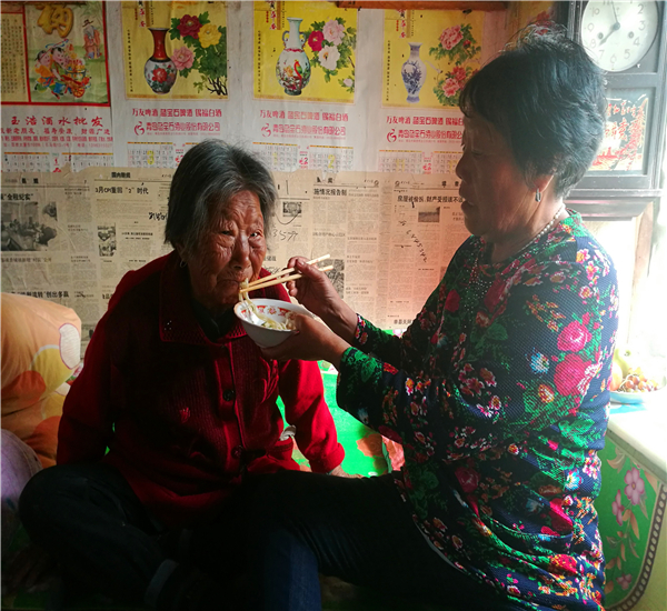如今,她伺候婆婆也三年多了。每天她都拿濕毛巾給老人洗手,洗臉。隔天就給老人洗頭。老人沒有食欲,她就一日三餐變著花樣給老人做。最近一年,婆婆屎尿都在炕上,她也不嫌棄,給她收拾,給她換衣清洗。