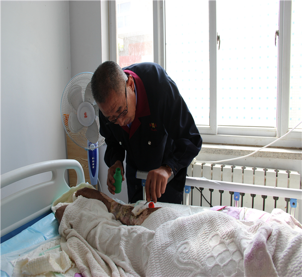 事故發生后,潘書武帶弟弟四處求醫,可無奈燒傷已經觸及筋骨,難以痊愈,從此弟弟便癱瘓在床生活不能自理,一躺便是4年。由于弟弟潘扣柱一直單身,沒有兒女,生活起居就成了大問題。為了照顧好弟弟的日常生活,一日三餐的重擔便壓在了潘書武的肩上。4年來,潘書武每天為弟弟擦身、洗衣、做飯、喂飯、敷藥、打掃衛生,從未停歇。為了讓弟弟吃好的,潘書武連買饅頭都要精挑細選,一定要買最松軟的饅頭給弟弟。有時潘書武的早餐僅用饅頭和咸菜湊合,而弟弟的早餐卻是雞蛋和牛奶。潘書武老伴擔心弟弟總吃同樣的菜會吃膩,于是經常查閱菜譜,還買了煮蛋器、電餅鐺等器具,力求做出不同花樣的飯菜。