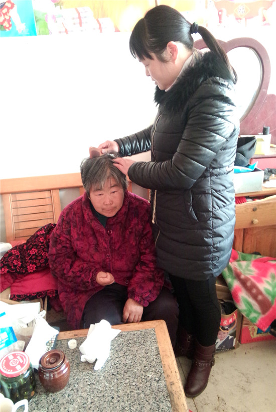 等到婆婆出院,她卻精神憔悴,人瘦了一大圈。得病之后,婆婆幾乎失去了正常的生活自理能力,不能做飯、看孩子,生活上處處需要人照顧。面對此處境,一般人都會有畏難情緒,尤其是對方和自己沒有血緣關系。但田紅梅的婆婆得病后,她沒有任何嫌棄的情緒,每天主動為婆婆洗腳、揉腿,喂飯,清理大小便。婆婆因病不思飲食,她就天天換著花樣做飯伺候;自己平時很是節儉,給婆婆花錢卻是“大手大腳”。除了和丈夫操勞繁重的農活,她還要照顧一家人的飲食起居,總是把好吃的讓給老人和孩子,有時候即使自己身體不適也不舍得給自己改善改善。