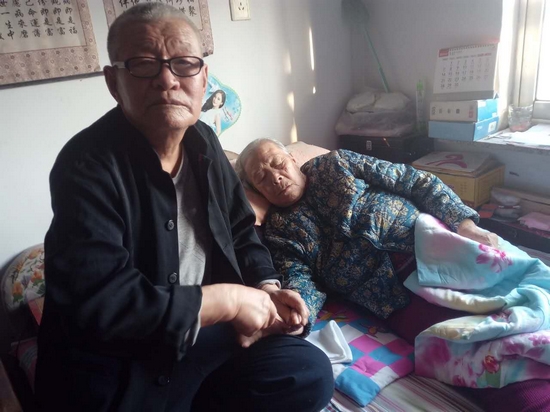 趙俊民18歲當兵, 22歲轉業,同年迎娶了鄰村的孫麗玉。“結婚時,我們娘家人不怎么愿意,說他家里窮,我就和父母說,窮還能窮一輩子嗎?”在孫麗玉的堅持下,她父母才答應了這門親事。婚后,趙俊民和孫麗玉的小日子過得也挺紅火,然而天有不測風云,孫麗玉43歲時得了腦血栓,6年后癱瘓在床,一直到現在。27年來,趙俊民一直悉心照顧妻子,從早上7點起床幫著妻子洗漱排便,一直到晚上9點左右伺候入睡,一天里不知道要為妻子按摩多少遍,還要為妻子處理大小便、洗衣、做飯等其它事情。為了照顧好妻子,這27年中,趙俊民從不敢出遠門,每天都像上緊了發條一樣,沒有一刻空閑。由于上了年紀,現在照顧起妻子來也有些吃力了,每次都是汗流浹背,但是他仍盡心盡力,從未有過怨言。