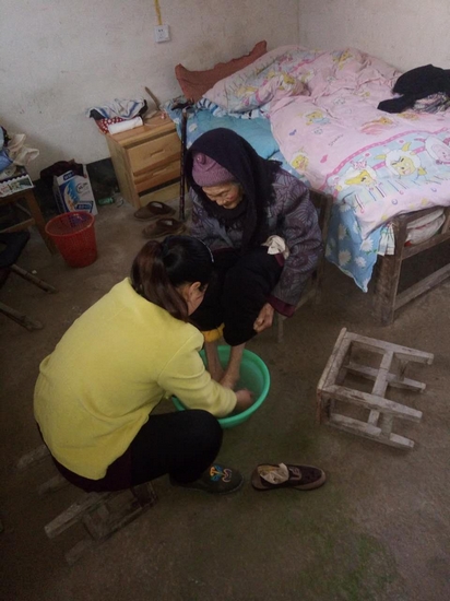 俗話說,久病床前無孝子。然而婆婆卻是久病床前有孝媳。當(dāng)初,楊紅梅既要服侍婆婆,又要照顧著奶奶和一歲多的女兒,還要參加工廠勞動,她不得不天未亮就起床,做好飯菜給婆婆送去,然后出早工,晚上要收拾家務(wù)、干農(nóng)活,每天忙到深夜才入睡,她起早貪黑,披星戴月,任勞任怨,毫無怨言。婆婆病情最嚴(yán)重的時候,她和大姐輪流在醫(yī)院陪夜,她精心伺候著婆婆,盼著老人早日康復(fù),同室病友都說她是老人的親閨女。幾天過去了,可婆婆的病情不見好轉(zhuǎn),已被中心醫(yī)院列為嚴(yán)重病情,已被下病危通知書,需要轉(zhuǎn)院治療,禍不單行,不知怎么回事奶奶身體也垮下來了,加上孩子年幼,這一切的事情壓得她喘不過氣,在家里,奶奶身體也越來越差,時常出現(xiàn)頭暈眼花,大小便失禁的情況,楊紅梅依然無怨無悔,不辭辛勞照顧。奶奶大小便不方便,便放了一個便桶在墻角,每天一次清洗;奶奶洗澡要備好衣物、洗澡水;吃喝拉撒無一不安排得妥妥當(dāng)當(dāng)。每天給老人送飯按摩身體、擦臉、洗衣、洗腳、端便盆,從不嫌臟嫌累。為了讓婆婆安心養(yǎng)病,每次去醫(yī)院,她頂著家里所有的生活壓力,給婆婆報平安:娘,家里一切都好,您放心吧。