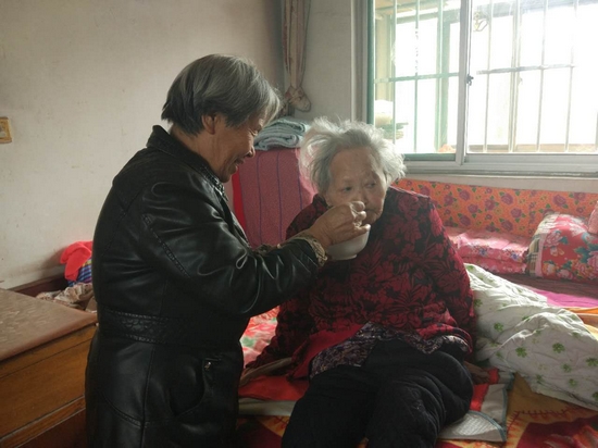 有段時間,婆婆因為胃出血她沒有多大力氣吃東西,劉貴清就把食物嚼碎了再喂給婆婆吃,看著婆婆一點點的吃下東西,劉貴清懸著的心終于落下了。