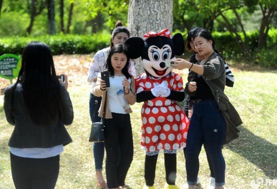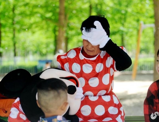 為了讓兒媳得到更好的治療,銀丕芝決定干些力所能及的活掙錢,幫人刷盤子、掃地這樣的活她都干過。后來她從一位病友的演出公司借來米老鼠樣式的道具服,上街與人合影。濟南森林公園、大明湖畔等處,都留下了她略微佝僂的身影。靠與人合影,銀丕芝一天可以掙二三十元錢,除了飯錢,剩下的她都用來給兒媳買營養(yǎng)品。
