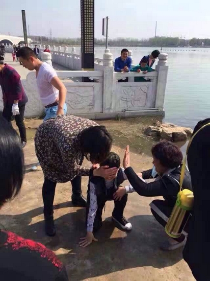 2017年4月2日下午3時左右,在聊城市陽谷縣南湖(金水湖)旅游景區(qū),發(fā)生了驚險的一幕,一個孩子在湖邊游玩時不慎落入水中,跟隨孩子的是懷孕的母親和年邁的姥姥,兩位家長行動不便,只能在岸邊焦急的哭喊,這個時候,水已經(jīng)淹沒孩子的頭頂,孩子在水里不斷掙扎著,情形十分危急。
