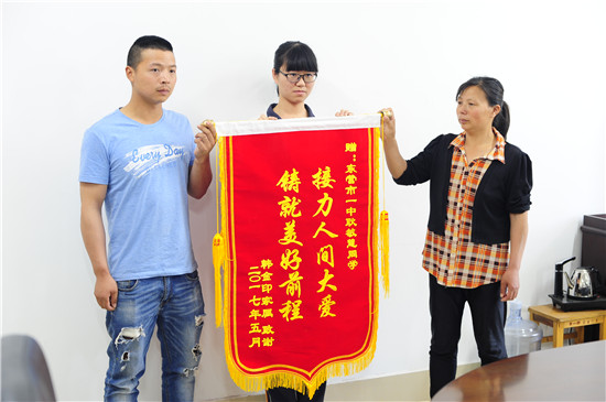 5月12日,傷者家屬何嬌娥將一面印有“接力人間大愛 鑄就美好前程”的錦旗送到了耿敏慧手中。當天,東營市交警支隊直屬一大隊副大隊長也將一封感謝信送到了學校,對耿敏慧的行為給予了高度贊賞。“如果現場沒有小女孩的及時幫助,我丈夫的命可能就保不住了!焙捂鹫f,當天晚上搶救很及時。