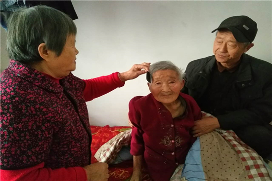如今,王桂英的婆婆也已經(jīng)92歲高齡了,老太太容光煥發(fā),渾身上下干凈利落,這些都離不開王桂英的精心照顧。飲食上,王桂英除了每天堅(jiān)持讓婆婆吃益于老人消化的食物之外,沒給老人斷過水果,天冷的時(shí)候就燙熱了給老人吃。老人愛吃辣,但牙口不好,王桂英就用蒜臼子把蒜瓣、蔥頭搗碎了給婆婆拌菜吃!鞍衬锏媚X梗塞已經(jīng)8年了,好幾回醫(yī)院都給下病危通知書了,多虧了桂英照顧的好才堅(jiān)持下來!闭煞驈堥L順說這句話時(shí),眼中滿是對妻子的敬佩。
