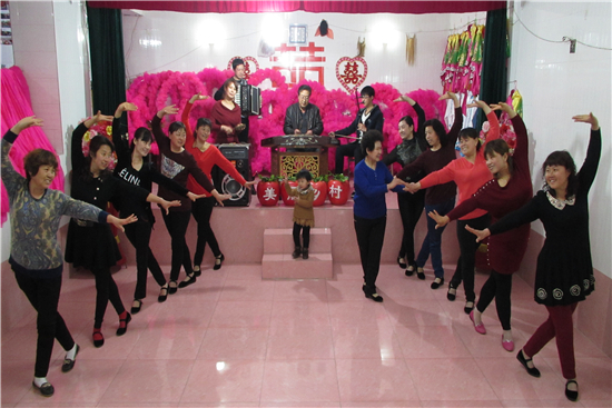 張蓮和丈夫都是戲劇迷,二人勤儉持家、勤勞致富。直到2000年,有錢了的張玉蓮發(fā)現(xiàn)周圍群眾的業(yè)余生活不是看電視就是打牌,就產(chǎn)生了組建文藝團(tuán),開展文藝活動的想法。當(dāng)時正值婦聯(lián)倡導(dǎo)“家庭文化建設(shè)”,她就把流落在鄉(xiāng)間的文藝愛好者聚集在一起,短時間內(nèi)就組織了40多人的文藝骨干,成立了巾幗文明隊。為了給大家提供良好的活動場所和演出舞臺,她自籌資金修建200平米的活動室做為春秋兩季的活動場所,然后又裝修240平米的地下室做為冬季的活動場所。15年來,她把愛好做為繁榮農(nóng)村文化生活的一項事業(yè)來經(jīng)營,自掏腰包累計花費20萬元用于文藝隊的場地建設(shè)、服裝、道具、音響、燈光的購置等。現(xiàn)在呢,從人員規(guī)模上,不僅吸引了本村的人員參加,周圍十里八村人都蜂擁而至;在節(jié)目編排上,她根據(jù)現(xiàn)今農(nóng)村形勢,想題材,編動作,常常為一個細(xì)節(jié)不理想夜不能寐,有時都能半夜爬起來實踐演練;有時為了一個道具,也是費盡心思,挖空心思在想怎樣做到既省錢又達(dá)到效果。