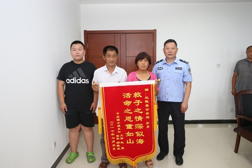 原來7月1日這天,天氣異常的炎熱,13歲的趙爾令和同學來到這個石塘游玩,這個石塘是多年采石后形成的人工池塘,面積較大水質(zhì)較清,由于天氣炎熱,幾個孩子就互相嬉笑著跳進了石塘里洗澡。孩子們壓根沒有想到,這個石塘看似水面平靜,底部卻是深淺不平,最深處有20米左右。幾個孩子只顧自己玩耍,絲毫沒有留意到不會游泳的趙爾令已陷入危險之中,等到孩子們發(fā)現(xiàn)趙爾鄰溺水時個個心急如焚卻無力救助。危急時刻,正在附近游玩的杜星和兒子杜金城三次潛入塘底,最終將已經(jīng)陷入昏迷的趙爾令打撈出來。看到孩子平安后,杜星帶著兒子悄悄的回家了。兩天來,趙昊一直在打聽恩人是誰,經(jīng)過多方努力,他最終得知救人的是蘭陵縣公安局禁毒大隊長杜星和他兒子杜金城。