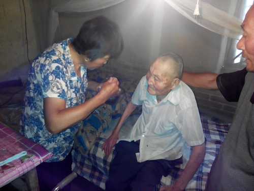 家人的衣服被褥清洗縫補的干干凈凈,她經常忙到深夜。家院空地大,王秀靈就把地翻起來種菜。王秀靈經常趕集上店給老人買好吃的東西。王秀靈是奶奶地地道道的服務員,她把飯做好后,先給奶奶把飯冷好,把碗放到奶奶手里,把菜放到嘴里,等奶奶吃好飯,給奶奶擦過嘴,她才去吃飯。每天晚上在奶奶睡之前把被窩給整理好,把奶奶的尿盆拿到屋里放到老人常放的地方。王秀靈怕奶奶的尿盆有氣味,隔幾天就給奶奶刷的干干凈凈。