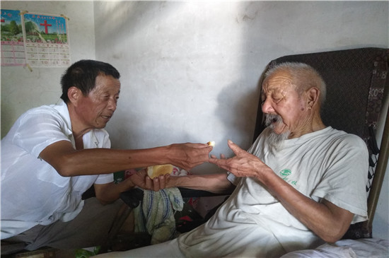 不是父子卻勝似父子,金鄉縣化雨鎮馮海村村民陳傳安八年如一日悉心照顧鄰居孤寡老人的事跡成為村里口口相傳的一段佳話。陳傳安和陳樂平是多年鄰居,2009年,陳樂平的兒子因車禍不幸喪生,為了生活,兩個孫子長期在江蘇打工,時年90歲的陳樂平成了孤寡老人。作為一墻之隔的鄰居,陳傳安每當看到這位善良孤苦的老人,就不禁想起自己的父親。他時不時地去老人家里坐坐,陪老人說說話。