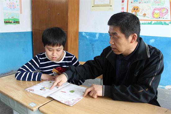 生活教育,他成為學生心中的好“爸爸”。工作上的劉老師就像一塊磚,哪里需要那里搬。近年來的招生以智障孩子為主,劉老師又擔任了一年級智障班的生活課教學。班上12名孩子,有的先天愚型,有的腦癱,還有的多重障礙。這些孩子,年齡小,自理能力差,有穿反鞋子、系錯紐扣的,還有大小便不能自理的,劉老師的教學遇到常人想象不到的困難。早上,他會最早來學校幫班里的每個孩子洗手、洗臉、刷牙、疊被子;課堂上,他會手把手地,十遍、百遍的教孩子的自理能力。他經常把自己孩子的衣服拿來給貧困學生穿上。這些年,只是為不小心磕磕碰碰的學生用的紫藥水,劉老師就自己掏錢買了幾十瓶。在劉老師的抽屜里一直存放著一個個顏色不同的線轱轆,上面插著縫衣針,這是他親手為孩子們縫補衣服、鞋子、書包等用的,縫衣針和線轱轆也不知道換了多少個。劉老師關愛學生就像關愛自己的孩子一樣。某某強學生是一個多重殘疾的孩子,父母輕度智力障礙,全家靠70多歲的爺爺操持生計。去年冬天,劉老師見孩子的鞋子破得露出了腳趾,沒穿襪子的兩只小腳丫凍得通紅。他什么也沒說就到商場買了雙新棉鞋給他穿上。經常遇到某某強同學的爺爺不能到校接孩子,劉老師就自己買車票送學生回家。坐車要走一百多里路,從車站下車還要步行十幾里的山路才能到家。在送學生回家的路上,劉老師的雙手被荊棘劃破了不知多少道血口,在上嶺和下嶺的時候也不知滑倒過多少次。一年、兩年、三年……,這樣的付出和堅持,孩子們有了驚人的變化:銘銘會自己洗衣服了,偉偉能洗刷碗筷了……,最終實至名歸,2016年9月,劉老師被縣教育局評為“優秀教師爸爸”。