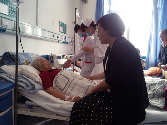 2015年7月底,因為下雨濕滑,獨自一人在家的婆婆不慎從高處跌落,造成盆骨骨折,并后腹膜持續(xù)出血多日。當時接到電話急忙從單位趕回家的楊穎看到院中的血跡也是著急萬分。叫救護車到了醫(yī)院后,她又忙前忙后請鄰居一起幫忙抬著婆婆做各項檢查,直到診斷結(jié)果出來,辦完住院手續(xù)以后,她才發(fā)現(xiàn)穿著高跟涼鞋的雙腳上已經(jīng)滿是水泡。可是她還不能休息,婆婆因為疼痛情緒也很糟糕,她坐在病床邊一直握著婆婆的手不停的說著安慰的話想分散些老人的注意力。一直到第二天外出旅游匆忙趕回的姐姐和請假歸來的丈夫到達,她才發(fā)現(xiàn)自己連口水都沒顧的上喝,嗓子已經(jīng)啞的說不出話。接下來的住院期間,因為婆婆雙側(cè)盆骨骨折,需要完全臥床治療,大小便都不能自理,她不怕臟累,不怕辛苦,每日守在病床前照顧伺候。公婆每次都跟去探望的人說:“我們真是有個好兒媳婦,端屎端尿的,從來也不嫌臟累!”看在眼里的丈夫也對她更加敬重。