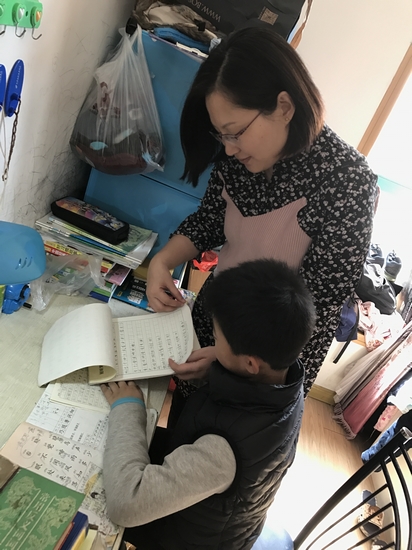 鄄城縣地稅局楊穎給孩子輔導(dǎo)功課
