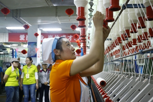 “她一個人能看30臺車。”菅敏所在分廠的廠長李曉麗輕輕拍著菅敏的肩膀說。細細的紗錢在牽抻過程中容易斷頭,會造成相應紗錠上的棉紗浪費,“斷頭”等問題要憑工人的眼力和經驗去發現。