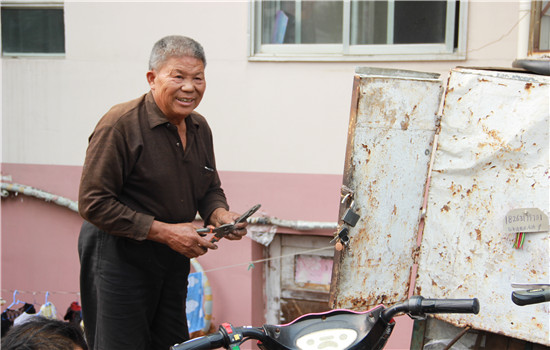 剛來(lái)威海的時(shí)候租的房子離修車攤有一條街的距離,他說(shuō)看著來(lái)修車的人越來(lái)越多,來(lái)回走路會(huì)耽誤修車的時(shí)間,索性他和老伴就搬到修車攤旁邊居住,沒(méi)想到這一住就是二十四年,這一修就是二十四年。李人民說(shuō)他就像他的名字一樣為人民服務(wù),他是這樣說(shuō)的,更是這樣做的。在他的修車攤前,來(lái)來(lái)往往很多人,他說(shuō)車就是他們的交通工具,上面載著的是個(gè)人,是一條生命,要是車不好,出事了那是一條命,修好了別人騎著,他心里才踏實(shí),看著他們把車趕走的背影,他心里都是滿足的。