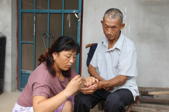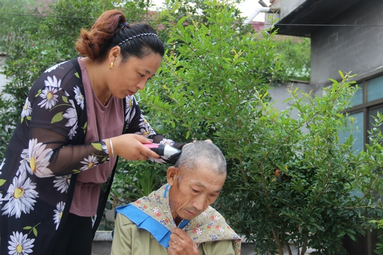 “誰(shuí)都有到老那一天?孝敬老人天經(jīng)地義,俺伺候公爹也算是盡到了做天下兒女應(yīng)盡的責(zé)任。”樸實(shí)的話語(yǔ)讓人們對(duì)李光萍增添幾分欽佩。李光萍常說(shuō),進(jìn)了曹門就是一家人,對(duì)公爹和婆婆好就是對(duì)丈夫和兒女好,李光萍在家里還是一個(gè)妯娌團(tuán)結(jié)和睦的好榜樣,照顧老人從不相互推脫,與弟媳婦掙著伺候公爹,也從不和小姑子講條件、分責(zé)任!昂⒆铀殖D暝谕忾_車,很少有空照顧公爹,孩子兩個(gè)姑姑出嫁多年,又不能天天守在公爹身邊,俺多擔(dān)載點(diǎn)應(yīng)該。”話雖不多,卻使得小姑子心里暖融融的。每次小姑子來(lái)看望公爹,她總是笑臉相迎,并讓小姑子多提建議。小姑子深受感動(dòng),逢人便說(shuō),像俺嫂子這樣的賢妻良母十里八鄉(xiāng)也難找。2015年初夏,公爹不小心讓開水燙了,傷口紅腫,有感染跡象,李光萍每天一大早就用三輪車推著公爹到附近診所掛吊瓶,公爹的身子又不靈便,端湯喂藥、洗洗漿漿全落在她一人身上,在李光萍的悉心護(hù)理下,曹永亮的燙傷很快痊愈!叭舨皇莾合眿D為俺清洗換藥這么勤,傷口早就化膿了,胳臂、腿多處燙傷好的這么快,靠的是光萍這孩子的精心護(hù)理。”說(shuō)到這里,年過六旬的曹永亮眼睛濕潤(rùn)了。