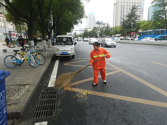 她記得要來環(huán)衛(wèi)局上班的時候,衛(wèi)生保潔隊隊長說過的一句話,就是“要做好一年365天不能歇的準(zhǔn)備才能干環(huán)衛(wèi)”,就是這一句話,開始了她酸甜苦辣的環(huán)衛(wèi)人生。她負(fù)責(zé)的這段路,人多、車多、廢棄物多,一天幾乎不能有任何閑暇時間。最苦最累的時候是夏天,大量的國槐花開過之后飄落到人行道板上,像一層薄薄的雪花,需要不停地來來回回清掃,如果不及時清掃,路人將國槐花踩碎后就將人行道板污染。