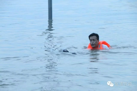 2016年7月29日下午漳衛(wèi)河臨清站的水位32.98米,流量457立方米/秒。19時左右唐炳儉正與妻子及女兒在漳衛(wèi)運河河堤之上觀看水勢,聞聽有一落水者順流漂下,急忙跟隨查看,見一防汛巡防車疾馳而過,遂跑步跟隨巡防車到達(dá)先鋒大橋北水文觀測站院內(nèi),隨手在巡防車上拿了一件救生衣穿上后來到水邊,此時幾個臨清市新華辦事處防汛人員已經(jīng)到達(dá)那里,他隨即跳入水中,水流湍急,難以站立,然后游到離岸邊10米左右的一個水文標(biāo)桿處,抱住標(biāo)桿停住,見落水人員快漂到到時,游過去托送到淺水處,此時已有三四個防汛同志在淺水處接應(yīng),大家齊心協(xié)力把落水人員抬上水文觀測站院內(nèi)平地之上。唐炳儉見落水人員系中年女性,面色青紫,沒有呼吸,因為長期從事臨床一線工作,有一定的急救經(jīng)驗,緊急給與清理口鼻異物,行胸外按壓心肺復(fù)蘇,在現(xiàn)場人員協(xié)助下緊急搶救,同時已經(jīng)有人撥打急救電話聯(lián)系救護(hù)車,急救車到達(dá)現(xiàn)場后,協(xié)助急救人員在不間斷搶救的情況下將傷者抬到急救車上,轉(zhuǎn)運至聊城市二院進(jìn)一步救治。事情完畢,遂攜妻女離去。
