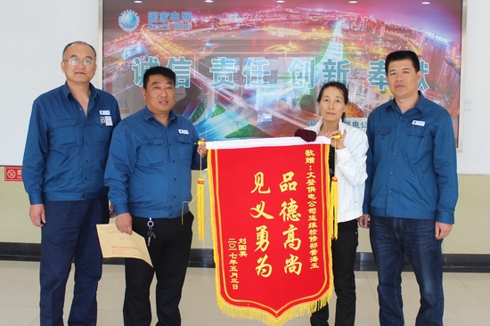 受傷村民劉國英住院一個多月,在院中就四處打聽好人管海玉的下落。5月3日上午,剛從醫(yī)院出院回家休養(yǎng),劉國英就帶著一面繡有“見義勇為 品德高尚”的錦旗和感謝信來到國網(wǎng)文登供電公司運維檢修部,當面感謝在她遭遇持刀盜賊時,管海玉伸出援手、智勇雙全、勇擒盜賊的英勇行為和救命之恩,并贈送現(xiàn)金被管海玉婉言謝絕。她說:“我都不知道該怎么感謝了,要不是你及時相助,我這條命都不知能不能搭上……管師傅是我的大恩人,救了我,也救了我們?nèi)遥廊诉是好人多啊!”